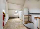 De tweede verdieping is verrassend ruim en biedt een grote overloop met dakraam, stookruimte en bergruimte. Daarnaast is er een vierde slaapkamer met dakraam en toegang tot een grote bergruimte.