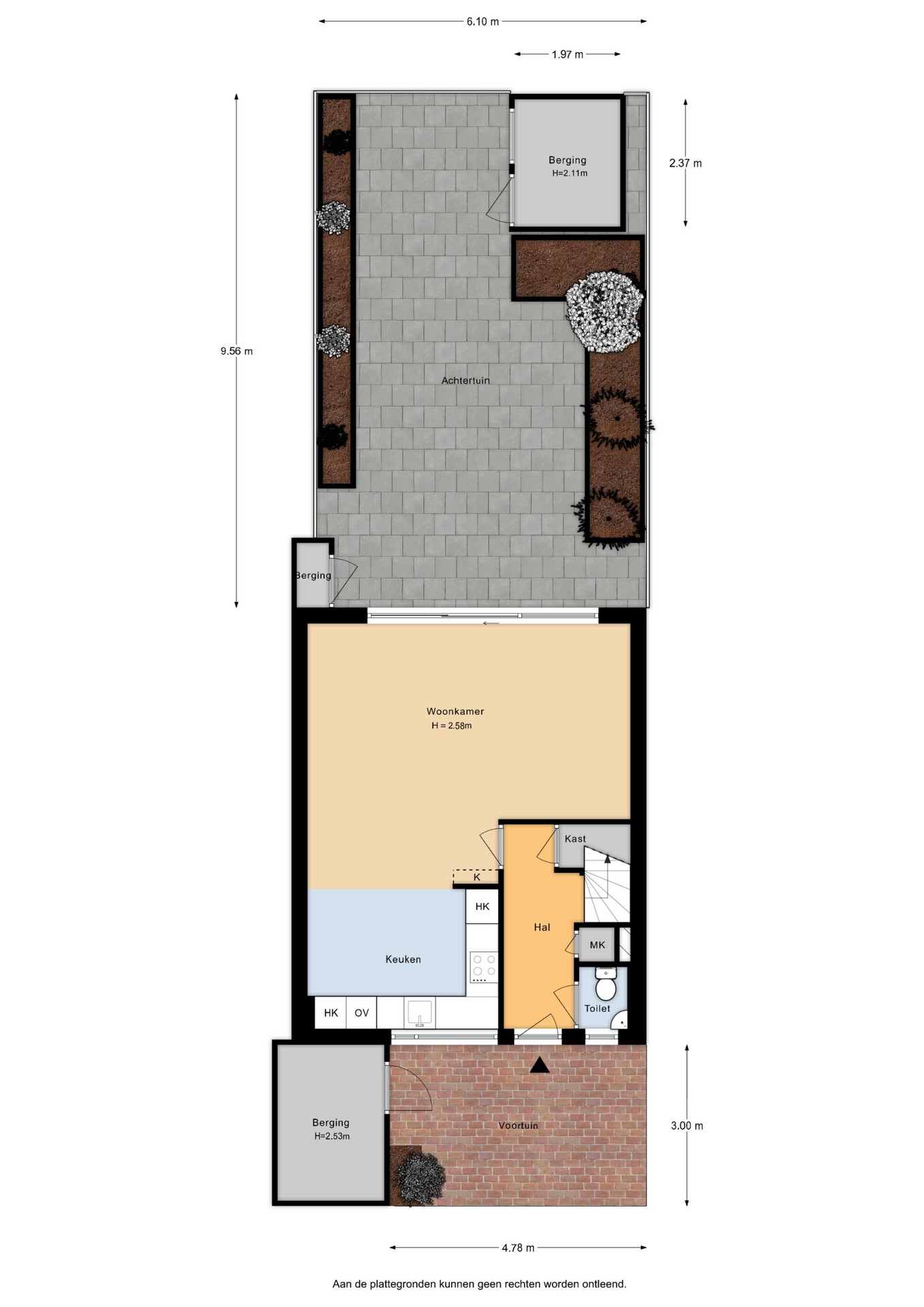 De woning beschikt over een heerlijke zonnige tuin met veel groen en privacy. De achtertuin ligt op het zuidwesten dus u heeft de hele dag heerlijk de zon in de tuin. Er is voldoende parkeergelegenheid in de directe omgeving. Aan de voorzijde van de woning bevindt zich een aangebouwde stenen berging.
