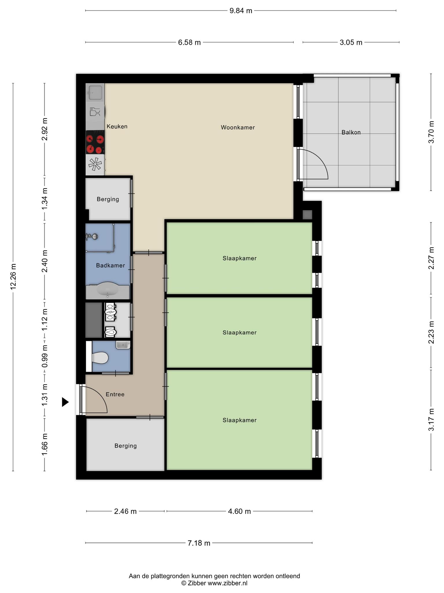 De woonkamer biedt voldoende mogelijkheden tot het creëren van een leuke zitopstelling. Vanuit de woonkamer heb je toegang tot het balkon met fraai uitzicht.