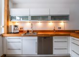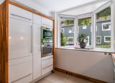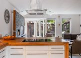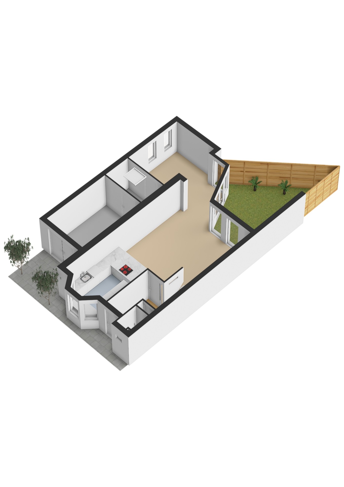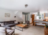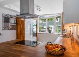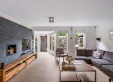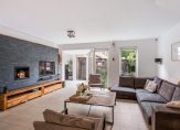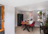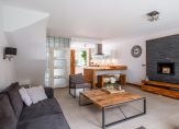 Bij binnenkomst valt direct de speelse en lichte woonkamer op, met aan de tuinzijde een gezellige zithoek en eethoek, de ideale plek om te ontspannen na een lange dag. Aan de voorzijde bevindt zich de moderne keuken, voorzien van een schiereiland met inductiekookplaat, afzuigschouw, oven, magnetron, koelkast en vaatwasser. De plavuizenvloer met vloerverwarming zorgt voor extra comfort.