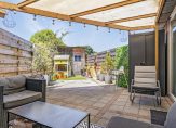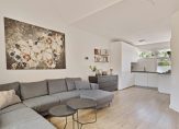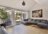 – Fijne lichte woonkamer met zicht op de diepe achtertuin;