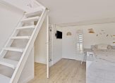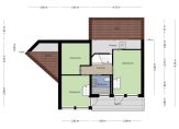 Eerste verdieping: overloop, DRIE slaapkamers.Twee slaapkamers hebben toegang naar het balkon op het oosten. De TWEE extra slaapkamers waarvan de ene twee dakramen heeft en de andere een dakraam, zijn te bereiken via een trap. De plafonds op de eerste verdieping zijn verlaagd waardoor de zolder verdieping een betere bruikbare ruimte heeft.