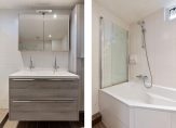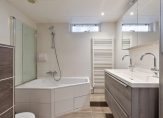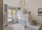 Door naar de eerste verdieping. Via de overloop is er toegang tot twee slaapkamers en de badkamer. De slaapkamer aan de achterzijde van de woning heeft onder de schuine raamkant veel opbergruimte. Nette badkamer met hoekbad (bad/douche combinatie), tweede toilet, design radiator, raam en dubbele wastafel met meubel en heerlijk uitgerust met comfortabele vloerverwarming.