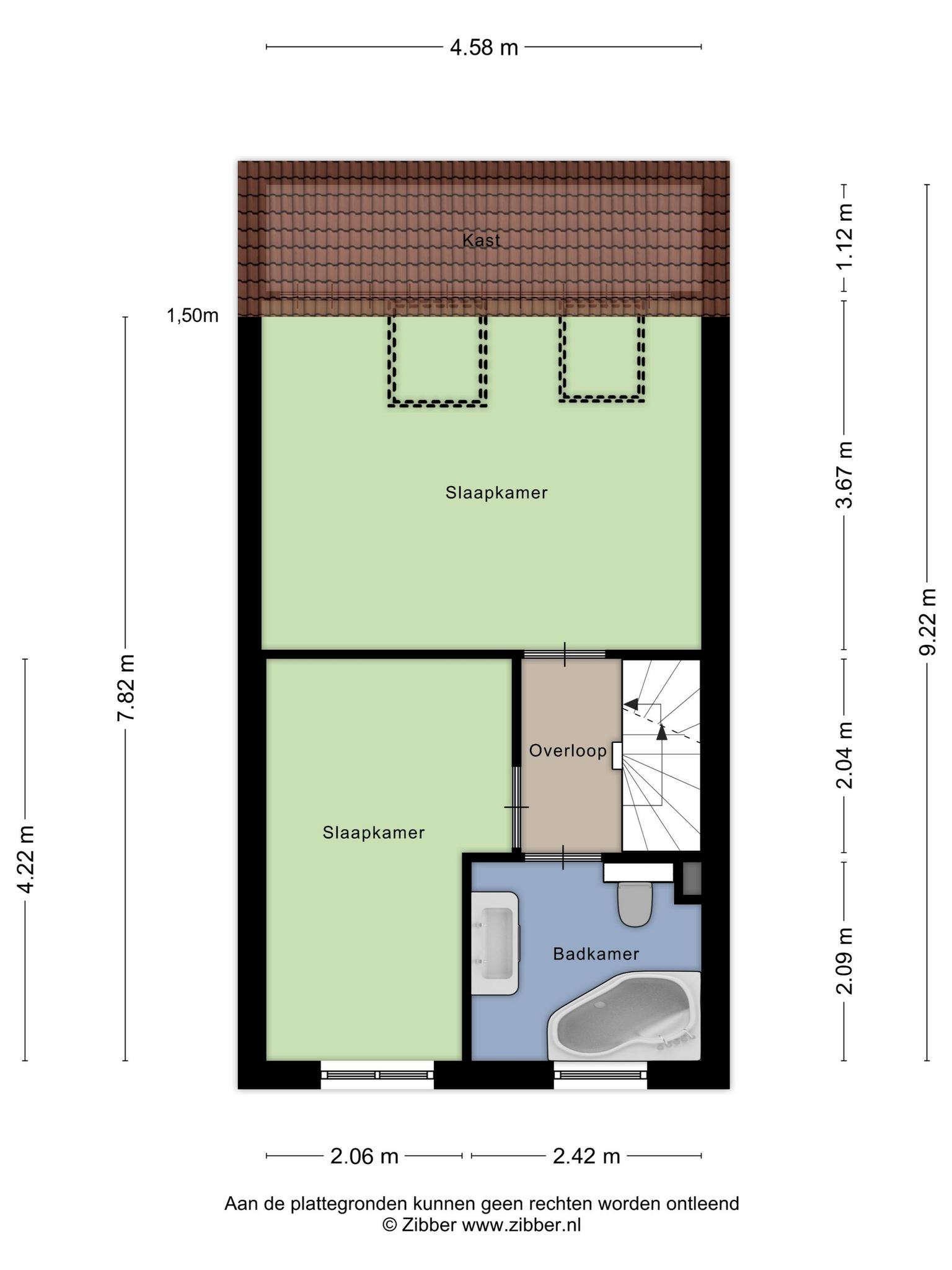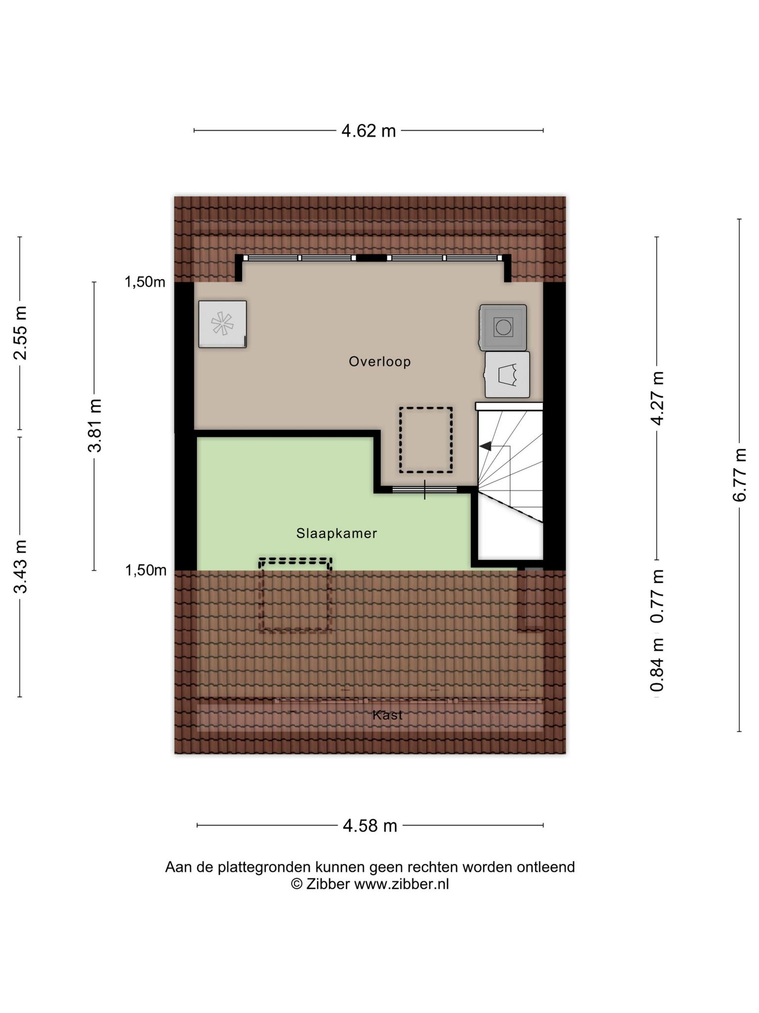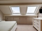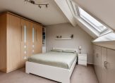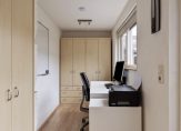 Op de bovenste etage is een grote voorzolder en derde slaapkamer. Ook op deze slaapkamer aan de voorzijde van de woning zijn veel opbergmogelijkheden onder de schuine kant.