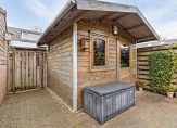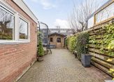 Via de aangebouwde ruimte op de begane grond is de fijne achtertuin bereikbaar, gelegen op het westen, met achterom en vrijstaande houten berging.