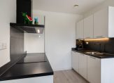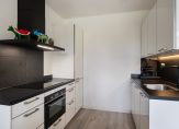 Via de voordeur kom je binnen in de hal met toegang tot de meterkast, de berging met wasmachine-aansluiting en de mechanische ventilatie, en de woon- en keukenruimte. De keuken is opgesteld in een praktische parallelopstelling en voorzien van diverse inbouwapparatuur. In 2021 zijn de inductiekookplaat, combi-oven/magnetron en de kraan vernieuwd. De woonkamer is heerlijk licht dankzij de grote raampartij en heeft glad gestucte wanden die zorgen voor een strakke, moderne uitstraling. Vanuit de woonkamer bereik je via openslaande deuren het tweede balkon van circa 6 m² – een fijne plek om van het buitenleven te genieten. Het gehele appartement is voorzien van een nette laminaatvloer (2021).