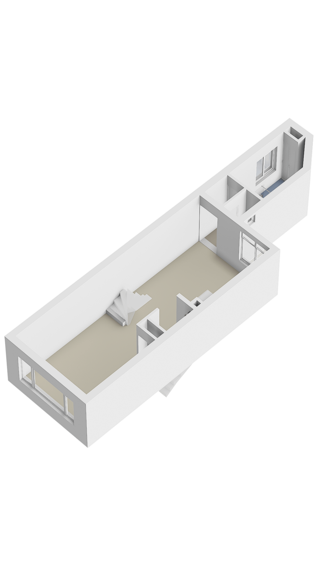 De moderne open keuken sluit naadloos aan op de woonkamer. Het langwerpige werkblad biedt veel praktische werkruimte en de keuken is uitgerust met inbouwapparatuur: een inductiekookplaat met afzuigkap, vaatwasser, koelkast, combi-oven en diverse opbergmogelijkheden. Een stijlvolle en functionele toevoeging aan de living. Aan de achterzijde van deze verdieping bevindt zich de moderne badkamer. Deze is voorzien van een open douche met glazen wand, een wastafel met spiegel en een opbergmeubel. De ruimte is volledig betegeld en verkeert in uitstekende staat. Naast de badkamer bevindt zich de separate toiletruimte — een groot pluspunt in dagelijks gebruik.