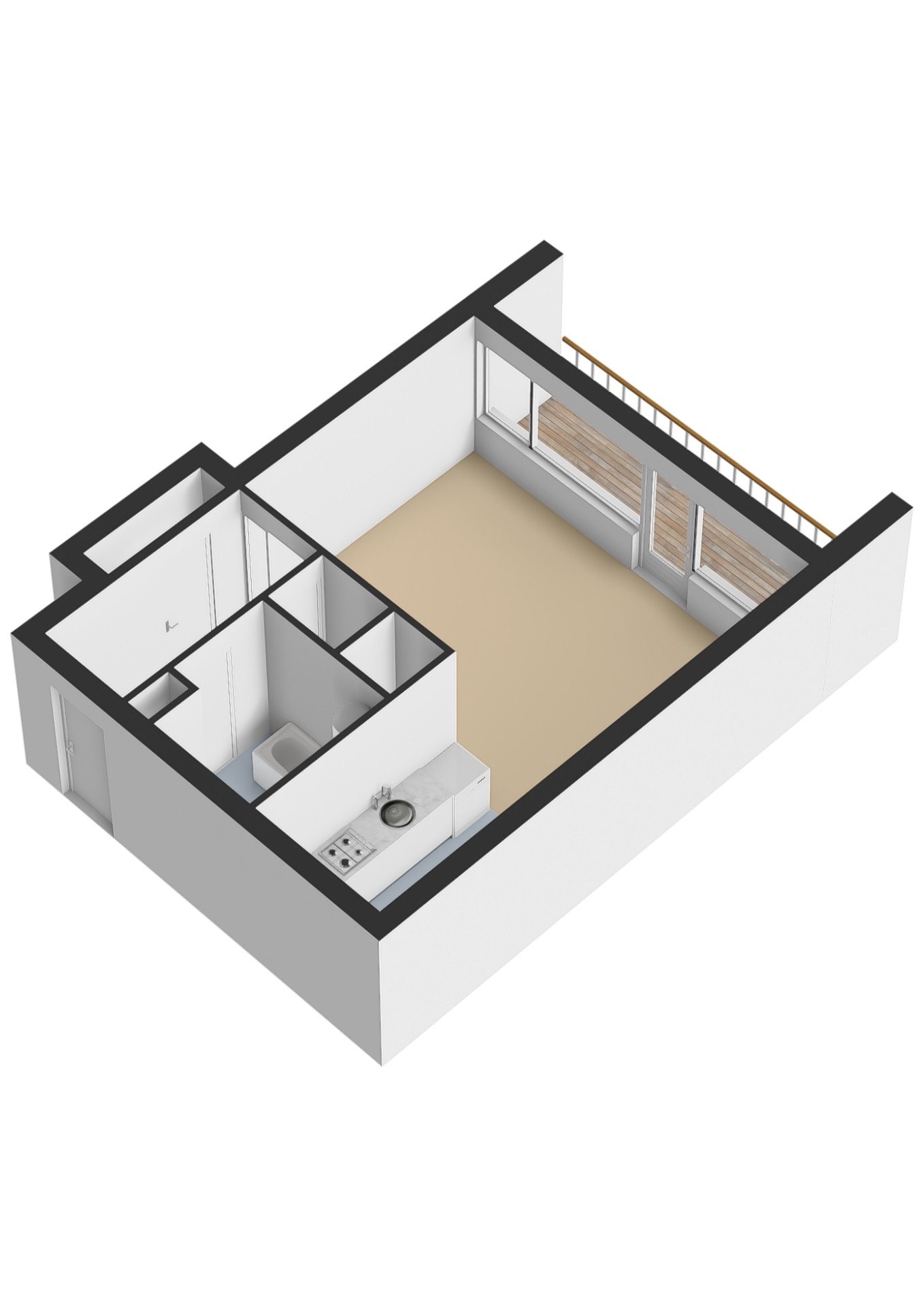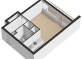 Betreed de woning en je wordt onmiddellijk begroet door een helder interieur. De woon-/slaapkamer is circa 23 vierkante meter, aangesloten is de keuken, uitgerust met gaskookplaat, koelkast en losse vaatwasser. Vanuit de woonkamer is er toegang tot het balkon. De badkamer is voorzien van alle noodzakelijke faciliteiten, met een douche-/badcombinatie, wastafel en wasmachineaansluiting.