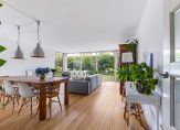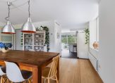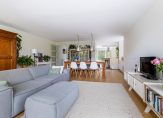 De royale living is ruim en licht: een heerlijke leefruimte. De hoogwaardige houten vloer zorgt voor een warme sfeer. Grote raampartijen verbinden binnen met buiten. Vanuit de woonkamer kijk je overal op groen. En dat op maar 15 minuten fietsen van de binnenstad van Utrecht.