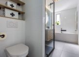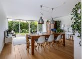The light-filled living room is a wonderful space to relax. The high-quality wooden floor adds warmth, while large windows connect indoors and outdoors. Wherever you look, you’ll see greenery, and all this just a 15-minute cycle from Utrecht’s historic city centre.