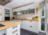 De open keuken ligt aan de voorkant van de woning. Je kookt op inductie. Er is een vaatwasser, een heteluchtoven en veel werkruimte. De keuken met kookeiland is een fijne plek om samen te koken of gasten te ontvangen.