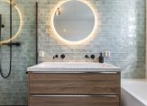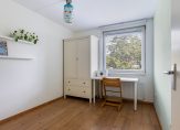 Bedrooms four and five are on the second floor. One has a stylish ensuite bathroom with vanity unit and shower plus underfloor heating for extra comfort. This bedroom also has a walk-in closet next to it and a cosy south-facing loggia. This bedroom is ideal as a master suite, a private space for a young adult, or a guest room.