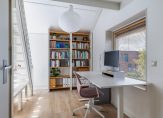 The other second-floor bedroom features a fixed staircase to the attic with skylight. This attic can be used for storage or as a loft bed. On this floor, there’s also a separate cupboard with connections for a washing machine and dryer.