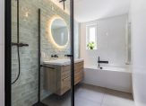 De voortuin ligt op het zuiden, de achtertuin op het noorden. Dat betekent: wél zon in de tuin, maar geen extra warmte in huis, omdat de zon niet op de glazen achterpui schijnt. Dankzij de voor-, zij- en achtertuin, de veranda en de loggia op de tweede verdieping kies je altijd zelf waar je wil zitten: in de zon of uit de zon.