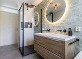 Op de eerste verdieping zijn drie comfortabele slaapkamers. De moderne badkamer (2022) heeft een ligbad, inloopdouche, badkamermeubel met dubbele wasbak en een tweede toilet.