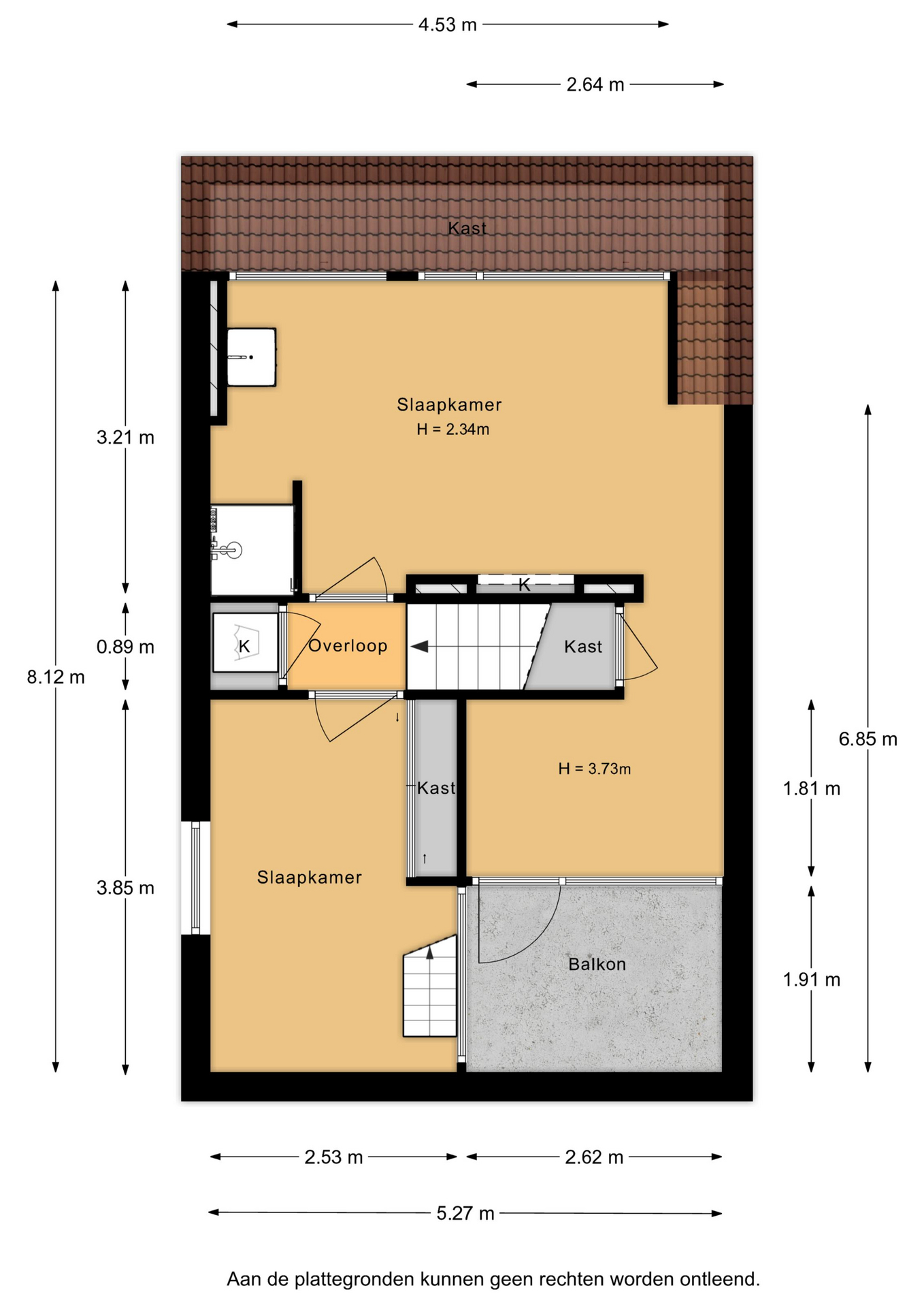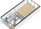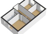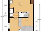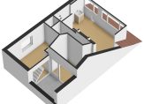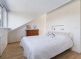 De andere slaapkamer op de tweede verdieping heeft een vaste trap naar de vliering met dakraam. Je kunt de vliering gebruiken als opbergruimte, maar ook als hoogslaper. Op de tweede verdieping is een aparte kast met de aansluiting voor de wasmachine en de droger.