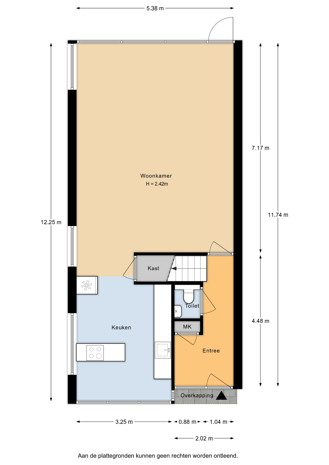 Via de ruime oprit en zonnige voortuin kom je bij de entree van deze comfortabele woning. De hal geeft toegang tot de garderobe, het moderne toilet, de meterkast, de trap naar de eerste verdieping en de woonkamer.