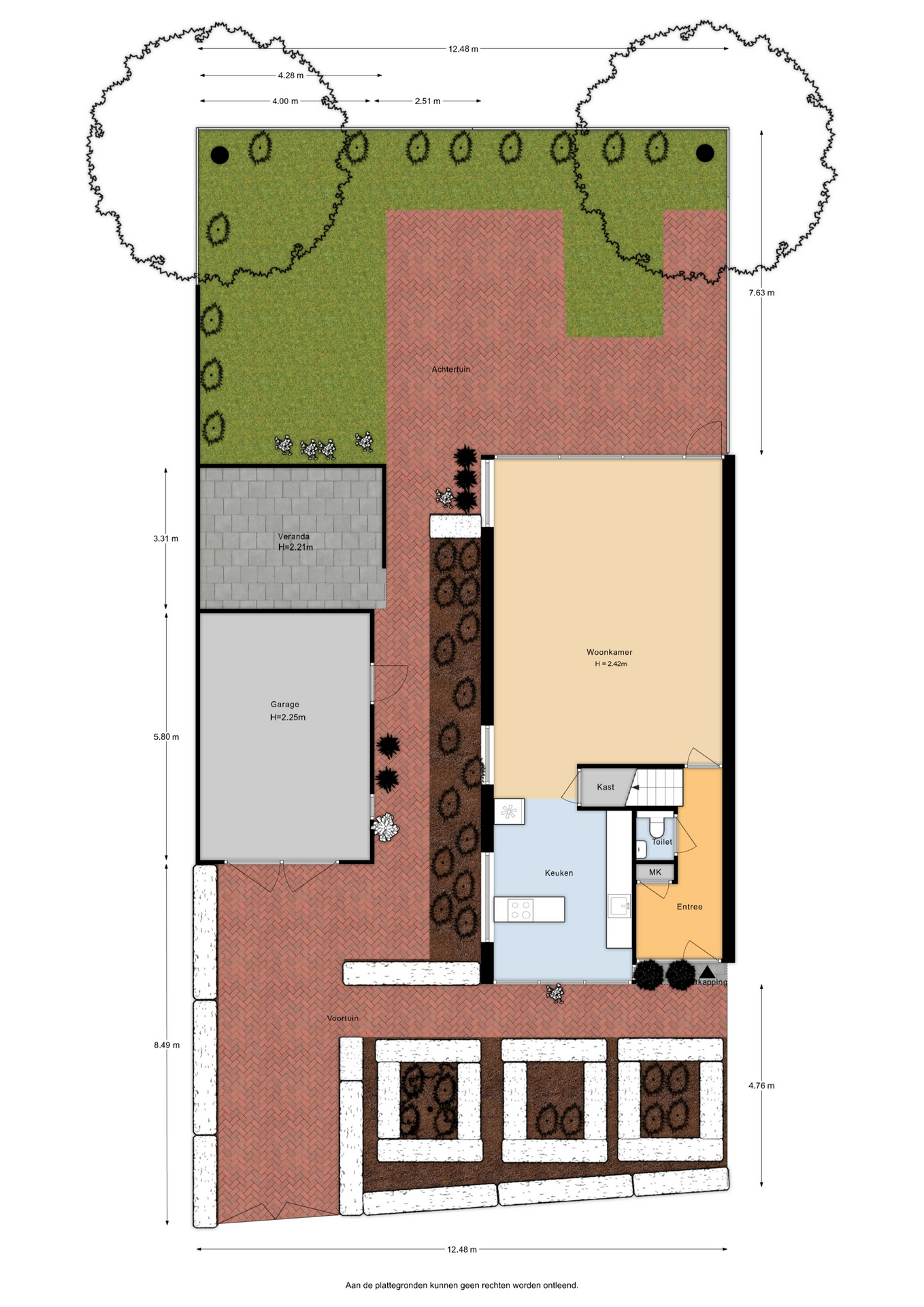 De tuin biedt volop privacy. Heb je groene vingers dan kun je hier je hart ophalen. Wil je een moestuin aanleggen? Dat kan perfect want je woont op voormalige tuindersgrond.
