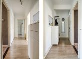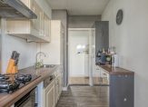 Afgesloten entree met bellenplateau, brievenbussen en toegang tot de bergingen. Gezamenlijke hal met trappenhuis naar de verdiepingen. Het ruime appartement bevindt zich op de tweede verdieping. Entree appartement met gang naar de keuken met kookplaat en afzuigkap en aansluitend een balkon.In de morgen staat er aan deze kant een heerlijk zonnetje. Vanuit de gang is de huiskamer bereikbaar.