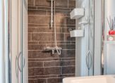 Via de gang zijn twee slaapkamers te bereiken en via de grootste slaapkamer is de badkamer met een douche en wastafel bereikbaar met een aansluiting voor een wasmachine. Het toilet is apart in de gang.