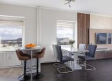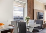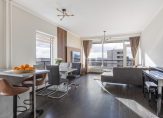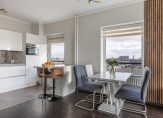 De zesde verdieping bestaat uit een ruime en moderne woonkamer, een gebouwgebonden buitenruimte en twee slaapkamers. De lichte woonkamer is het perfecte middelpunt van het appartement. Je zult ook de open keuken waarderen, met ramen aan de zijkant. Ook is er een badkamer uitgerust met een douche en een wastafelmeubel en een separaat toilet.